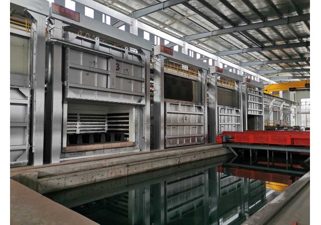 快速淬火機組由多臺室式爐或罩式爐(電加熱或者燃氣加熱均可)與一臺淬火操作車組合為一個快速淬火機組生產線。生產線也可以根據(jù)用戶的產量和工藝要求配套多臺不同的爐型,爐子的數(shù)量和爐型可以自由組合。